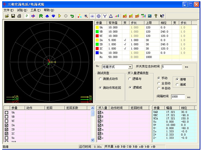 ? 5、可完成各種自動化程度高的大型復雜校驗工作,能方便地測試及掃描各種保護定值,進行故障回放,實時存儲測試數(shù)據(jù),顯示矢量圖,聯(lián)機打印報告等。