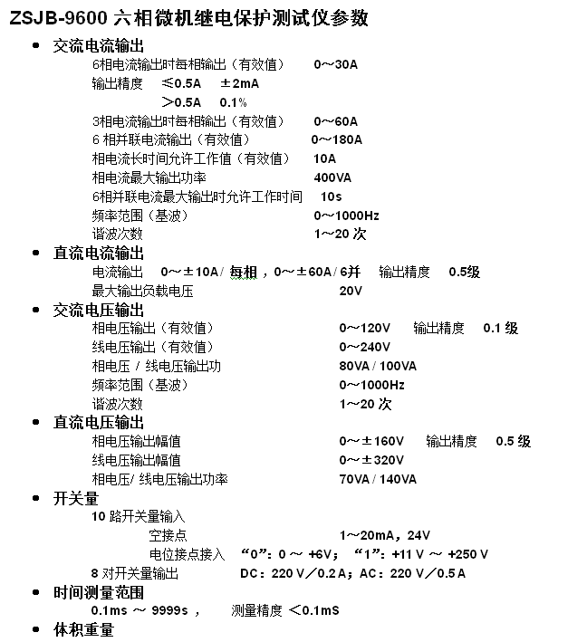 ZSJB-9600六相微機繼電保護測試儀參數(shù)