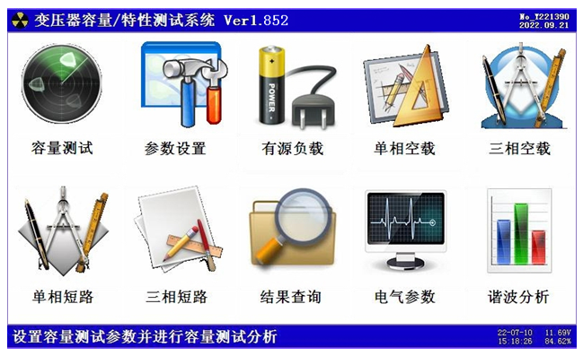 ZSRS-8000變壓器參數(shù)綜合測試儀可精確測量各種配電變壓器的容量,無源測量,方便、準確。內(nèi)部自帶電源、自動產(chǎn)生三相大功率測試電源??蓽y量各種類型的變壓器的空載電流、空載損耗、短路電壓、短路損耗。通過空載試驗可準確判定被測變壓器的型號,包括:S7、S9、S11、S13、S15、S20、S21、S22、S25等干變SCB9、SCB10、SCB11、SCB12、SCB13、SCB14、SCB15、SCB16、SCB17、SCB18、SCB19等各種類型的變壓器。