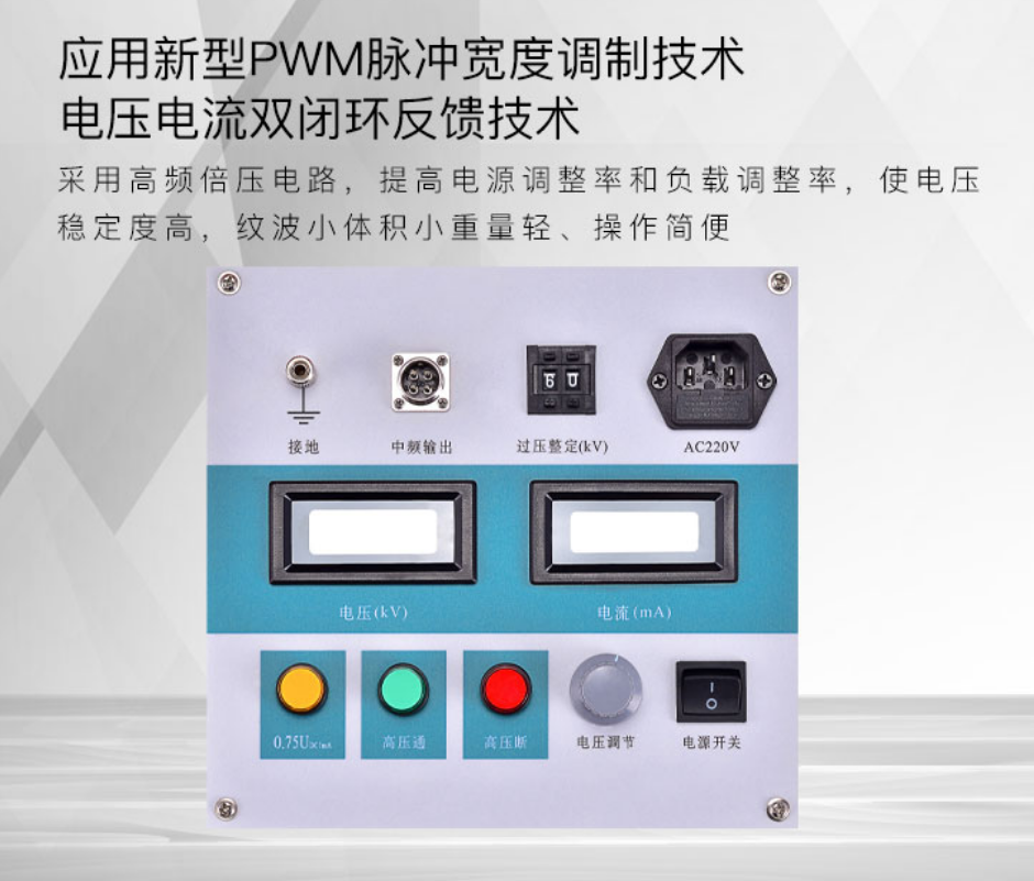 3、全量程平滑調(diào)壓,電壓調(diào)節(jié)細(xì)度好調(diào)節(jié)精度≤0.5%,穩(wěn)定度≤1%,電壓電流誤差1%(讀數(shù)±0.2kV),電流誤差±1個字。