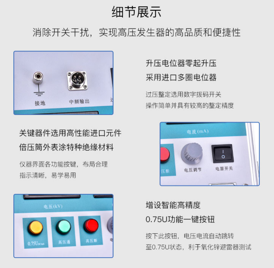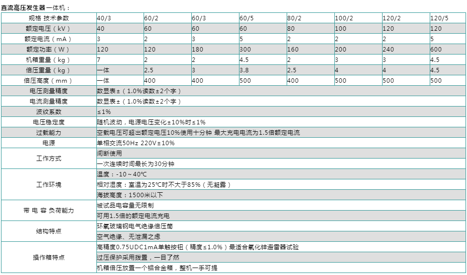 7、倍壓采用新型材料,輕巧、堅固。外表涂特種絕緣材料,電氣性能好,防潮能力強(qiáng)。