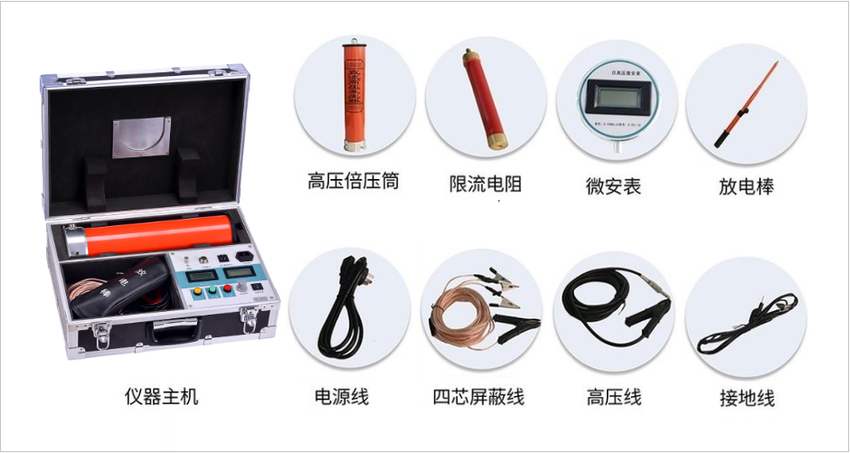 組成部分:控制箱 . 倍壓筒 . 微安表 . 限流電阻 . 放電棒 . 測試線