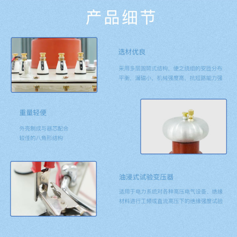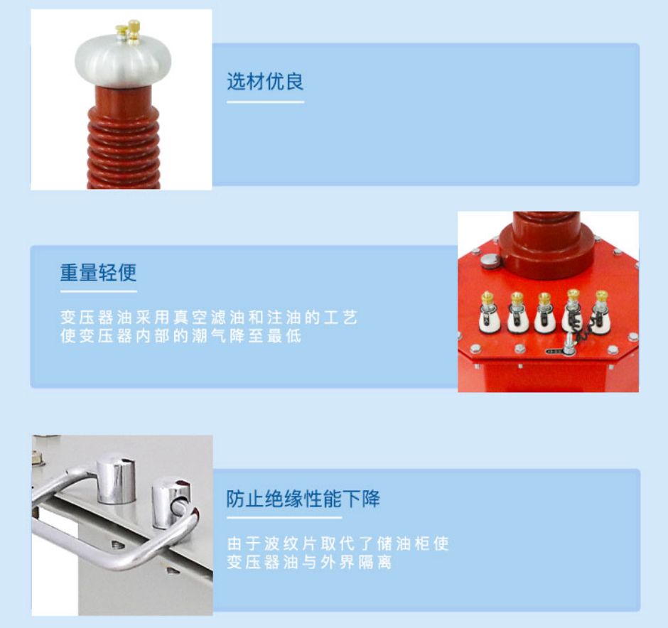 1.可根據(jù)用戶要求配置油浸式、干式或者SF6氣體式等各種試驗變壓器;