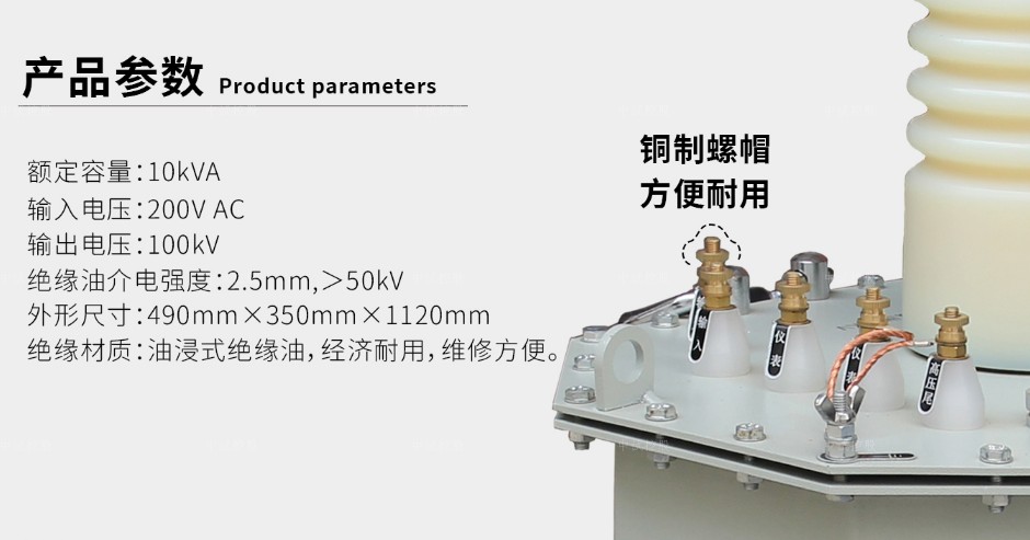 根據(jù)部頒標(biāo)準(zhǔn)規(guī)定,試驗變壓器電壓等級有:5、10、25、35、50、100、150、300kV等;容量等級:3、5、10、25、50、100、150、200kVA等。