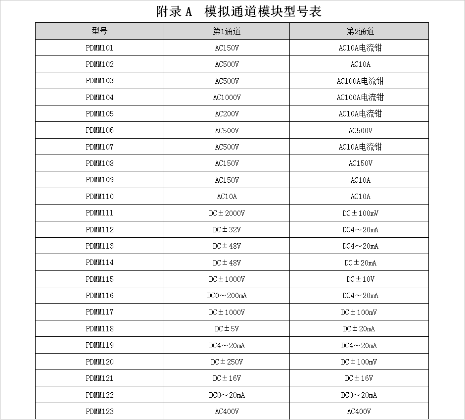 模塊型號詳見“附錄A”,模擬通道輸入特性詳見“附錄B” 8個(gè)模塊的通道型號、測量范圍,可根據(jù)用戶要求調(diào)整,或根據(jù)用戶要求提供其他型號模塊 |