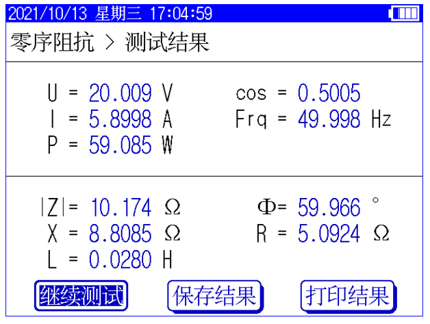 零序阻抗的測量適用于高壓側(cè)星形接線帶中性點(diǎn)的變壓器,儀器可記錄零序阻抗、零序電抗、零序電感、阻抗角、零序電阻。