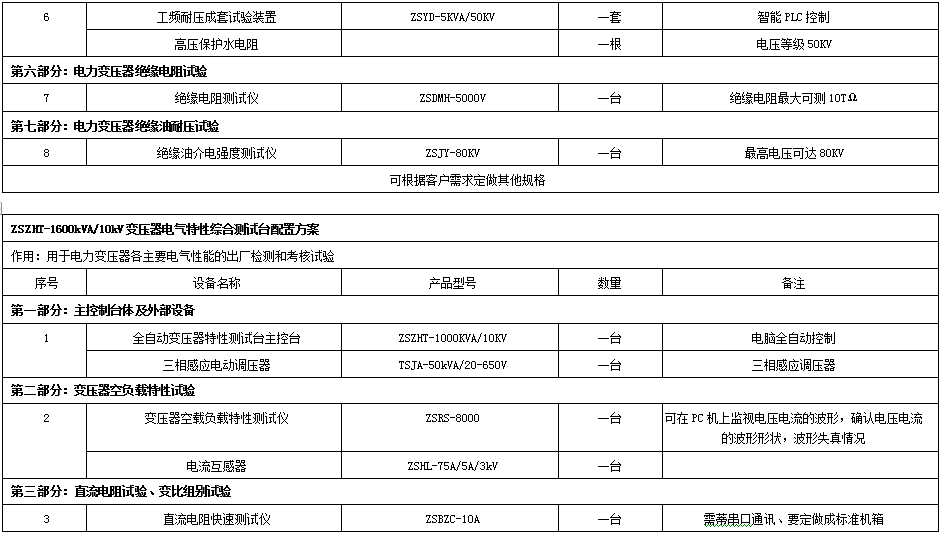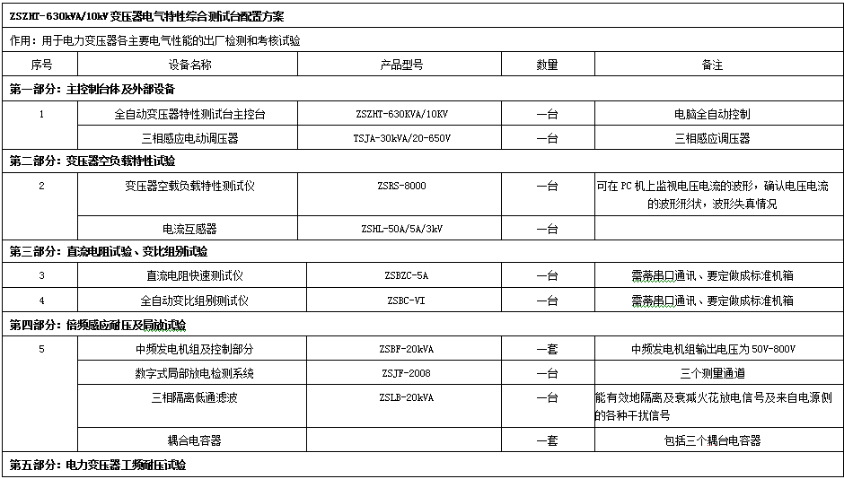 ZSZHT- 630kVA/10kV變壓器電氣特性綜合測(cè)試臺(tái)配置方案 |