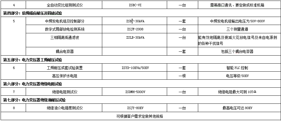 6、能滿足電力變壓器的直流電阻測(cè)試、變比組別測(cè)試、空載損耗測(cè)試、負(fù)載損耗測(cè)試、交流耐壓測(cè)試、感應(yīng)耐壓測(cè)試等試驗(yàn);