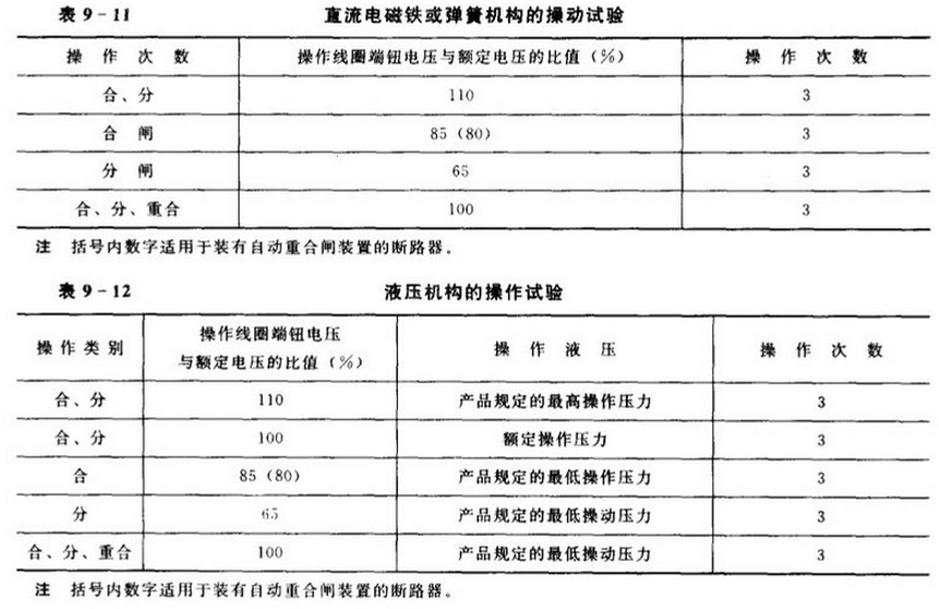 主要目的是斷路器在不同電壓(液壓)條件下,對斷路器進(jìn)行就地或遠(yuǎn)方操作,不允許 在不帶斷路器本體情況下進(jìn)行操作試驗(yàn)。每次操作斷路器應(yīng)正確、可靠動(dòng)作,檢查操作回路 是否完好,分、合閘是否正常,機(jī)械部分有否卡澀的現(xiàn)象。檢查按表9一11、表9—12進(jìn)行。