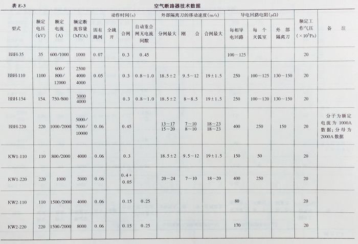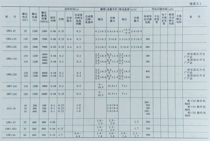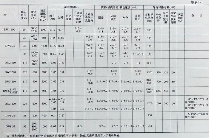 油、空氣斷路器技術(shù)數(shù)據(jù)查詢大全