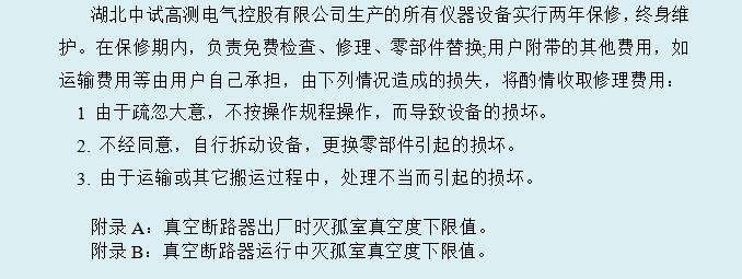 3.3.2性能指標檢測:真空度性能指標、絕緣電阻、接地電阻、介電強度、泄露電流;