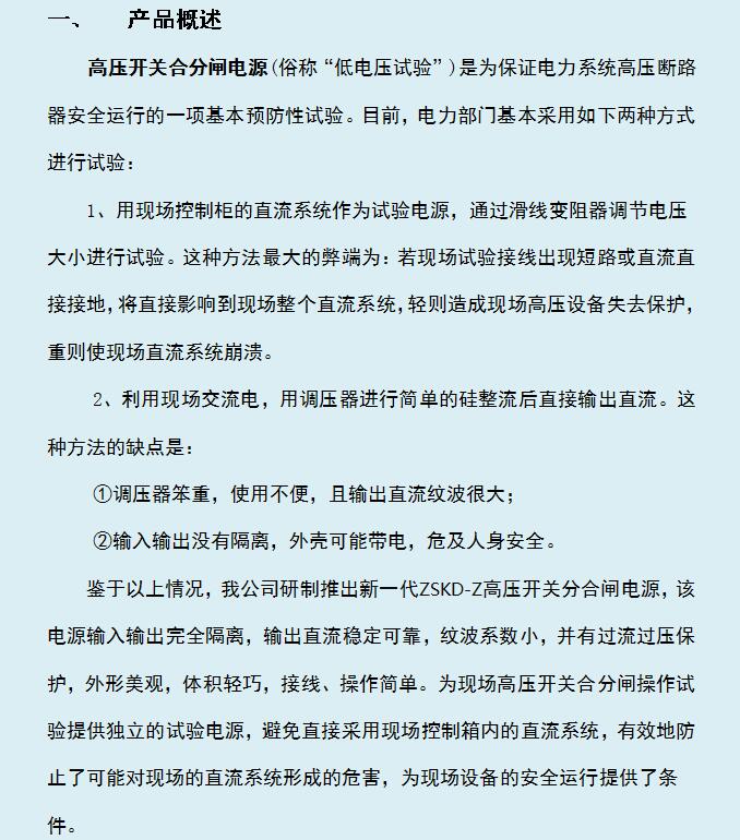 ZSKD-Z高壓開關(guān)操作電源,是為對高壓斷路器及其操作機構(gòu)進行檢測維修而設(shè)計的專用電源,具有電壓可調(diào)、操作簡單、體積小、攜帶方便等優(yōu)點,是高壓開關(guān)檢修不可缺少的檢測工具。