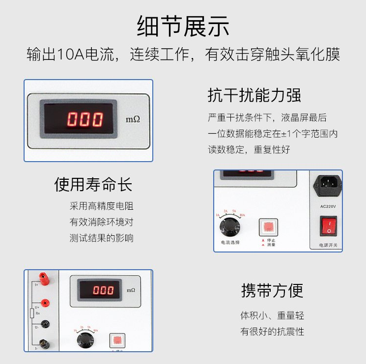 1、電源技術(shù):采用新電源技術(shù),輸出10A電流,能長時間連續(xù)工作,克服了脈沖式電源瞬間電流的弊端,可以有效的擊穿觸頭氧化膜,得到良好的測試結(jié)果;