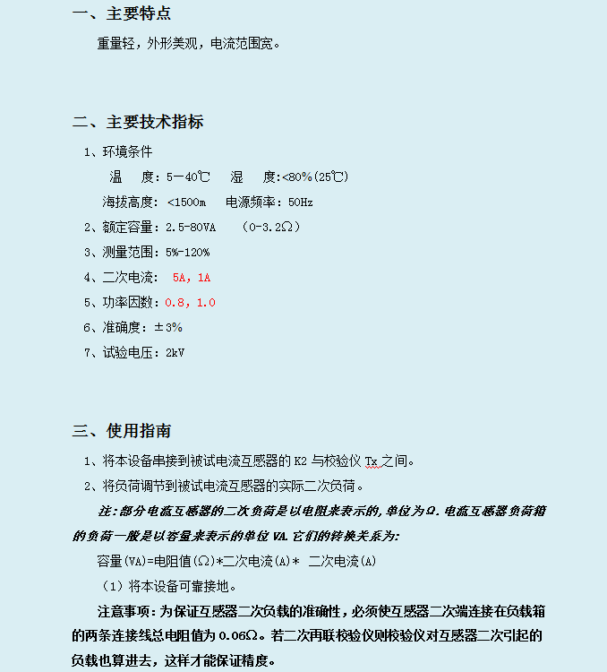 | 準(zhǔn)確度 | 電流:±3%±0.0025VA | 電壓:±3%±0.05VA |