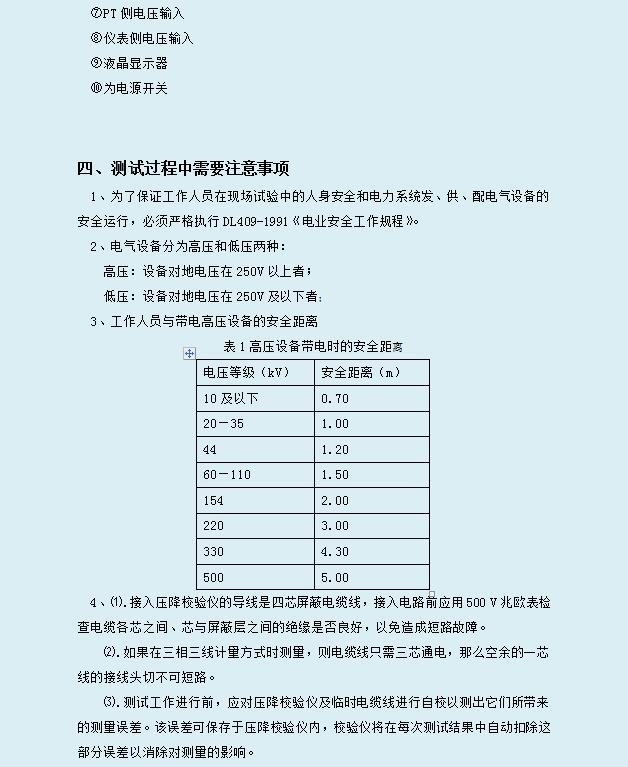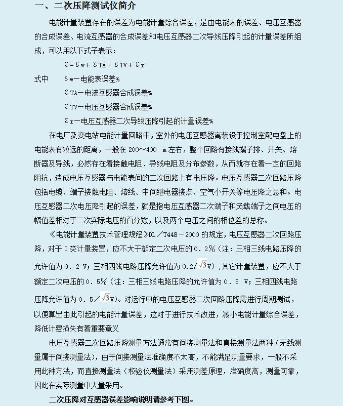 4、電壓互感器二次回路壓降的測試,一般均在實際負荷運行情況下現(xiàn)場帶電進行,為此必須嚴格執(zhí)行《電業(yè)安全規(guī)程》(電力線路部分)有關內(nèi)容;
