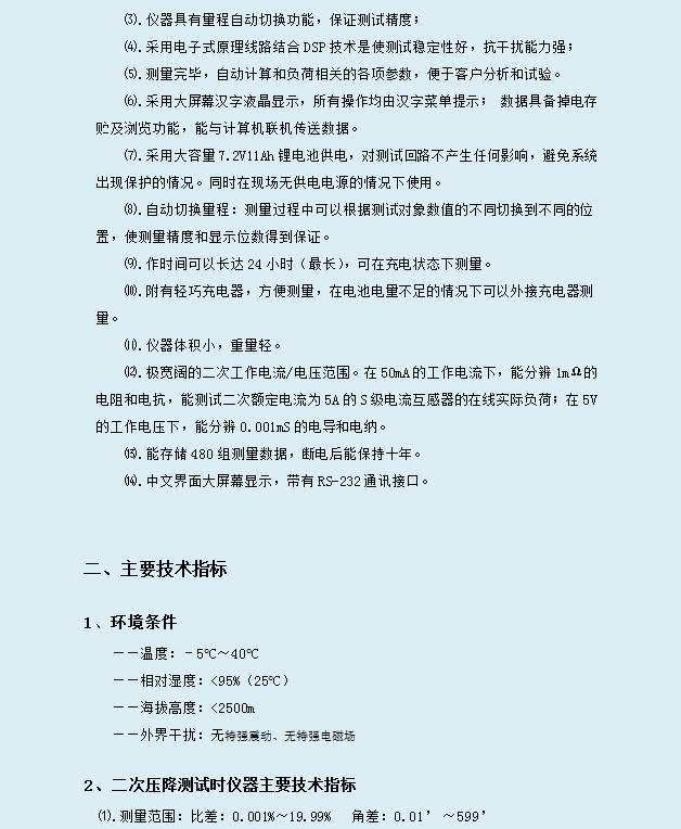 3、二次壓降全自動測試儀具有量程自動切換功能,保證測試精度;