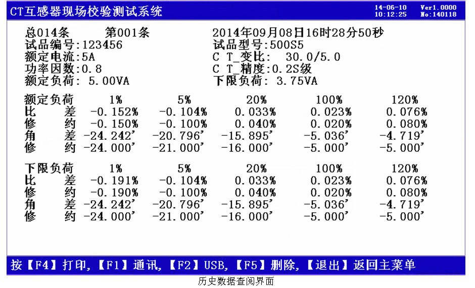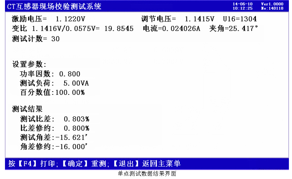10、自動對測試數(shù)據(jù)進行化整,并判斷是否超差,超差數(shù)據(jù)顯示高亮色,并且窗口右下角顯示超差,對互感器的數(shù)據(jù)特性直觀明了。