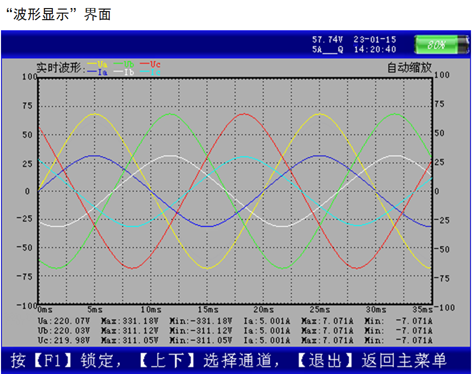 6、可顯示單相電壓、電流波形并可同時(shí)顯示三相電壓、電流波形;