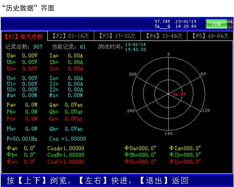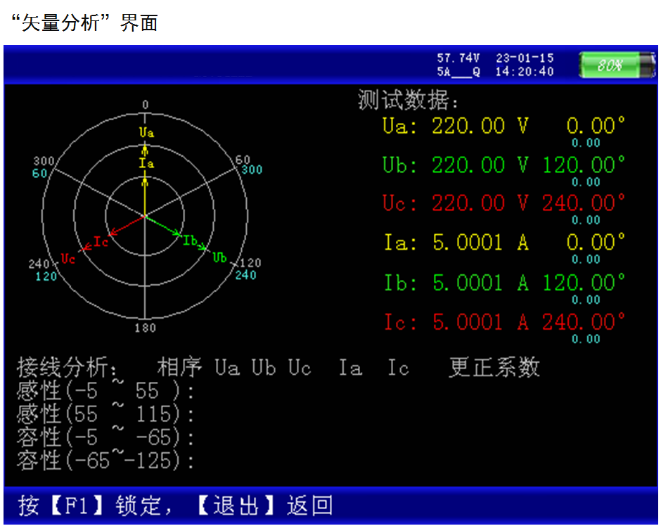 3、可顯示被測(cè)電壓和電流的矢量圖,用戶可以通過(guò)分析矢量圖得出計(jì)量設(shè)備接線的正確與否;