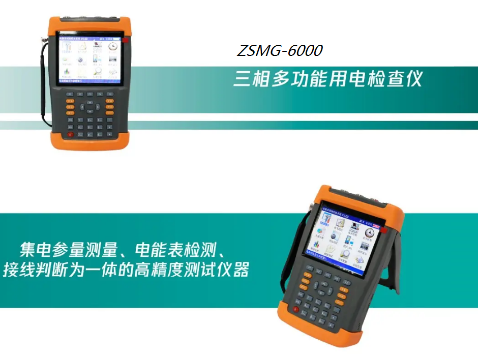 3、ZSMG-6000多功能三相用電檢查儀集電參量測量、電能表校驗、接線判斷為一體的高精度測試儀器。該儀器配以高精度、高線性度的電壓互感器和電流互感器,使儀器對各種參量的測量精度很高,同時配有鉗形電流互感器,使得現(xiàn)場接線簡便,無需斷開電流回路即可直接接入。