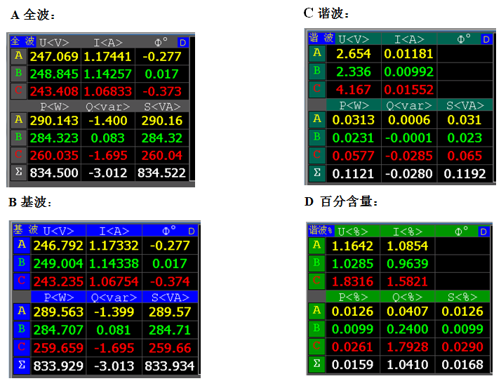 1、同時計算全波、基波、諧波全部參數(shù)。在校驗界面,同時實時顯示全波基波的U、I、P、Q、VA、相角,以及諧波的合成U、I、P、Q、VA和百分比,U、I的正序、負(fù)序及零序含量,諧波的PH+、PH-、PH+/P基%、PH-/ P基%、全波PF、基波PF及諧波PF。