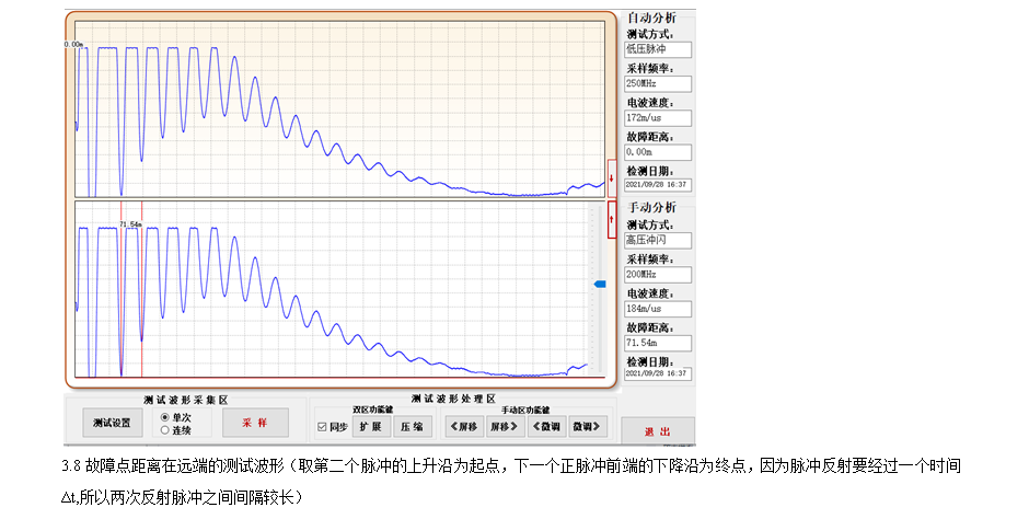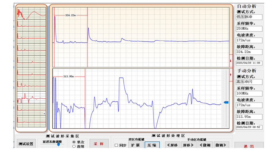3、儀器采用新的USB通信接口,采集信號穩(wěn)定,主機(jī)可自動選擇最低3.125MHz、最高達(dá)250MHz八種采樣頻率,自適應(yīng)脈寬,能滿足不同長度電纜的測試要求,減少了粗測誤差,提高了測試精度;