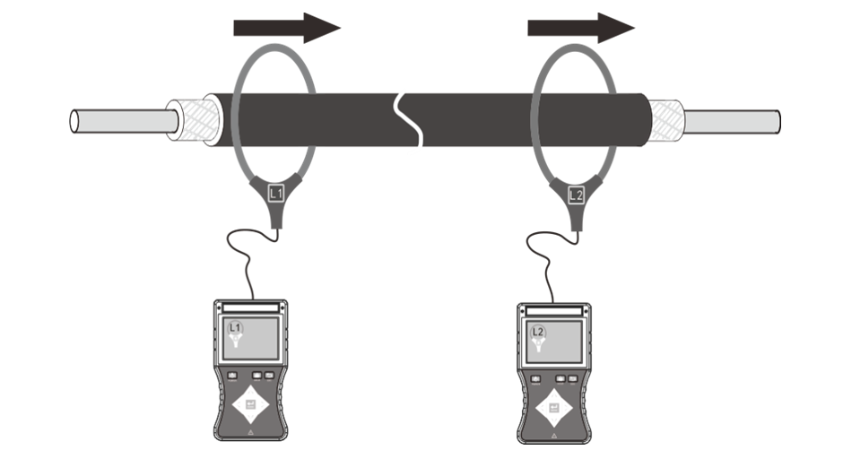 電纜識(shí)別時(shí),兩把柔性電流鉗箭頭方向指向電纜遠(yuǎn)端 |