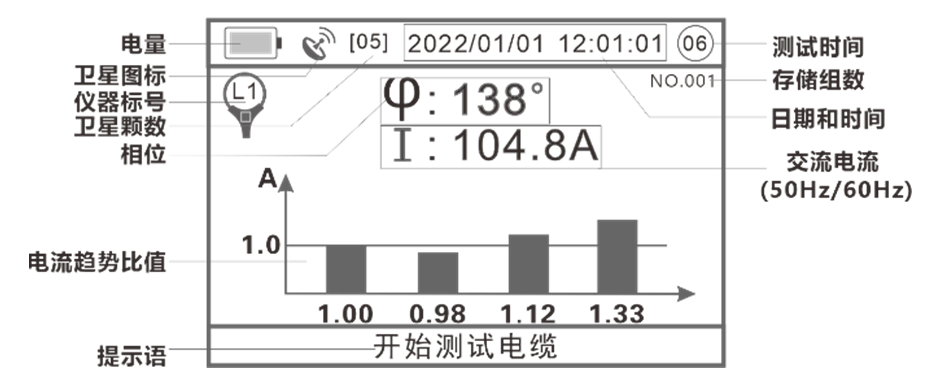 單芯帶電電纜識(shí)別,交流電流、相位、電流趨勢(shì)測(cè)試,線損電流 |