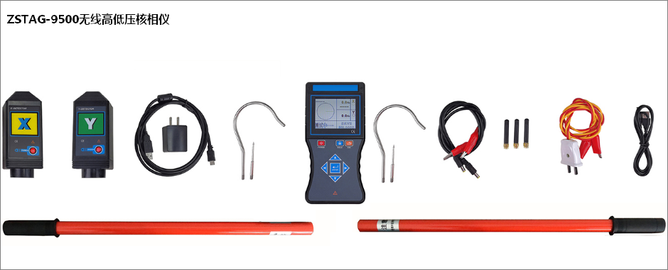 ZSTAG-9500無線高低壓核相儀又名全智能無線高壓語音核相儀、無線高壓核相器,簡(jiǎn)稱核相儀或核相器,由無線接收器、探測(cè)器、伸縮絕緣桿等組成。接收器采用3.5寸真彩液晶屏,同屏顯示核相結(jié)果、相位、頻率、向量圖指示,有“X信號(hào)正常、Y信號(hào)正常、同相、異相”等語音提示,清晰直觀。