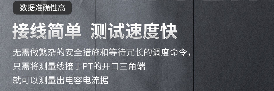 5、ZSCI-600A電容電流測(cè)試儀直接從PT的二次側(cè)測(cè)量配電網(wǎng)的電容電流,與傳統(tǒng)的測(cè)試方法相比,該儀器無(wú)需和一次側(cè)打交道,因而不存在試驗(yàn)的危險(xiǎn)性,無(wú)需做繁雜的安全措施和等待冗長(zhǎng)的調(diào)度命令,只需將測(cè)量線接于PT的開口三角端就可以測(cè)量出電容電流的數(shù)據(jù)。