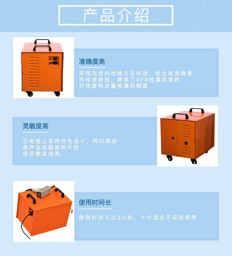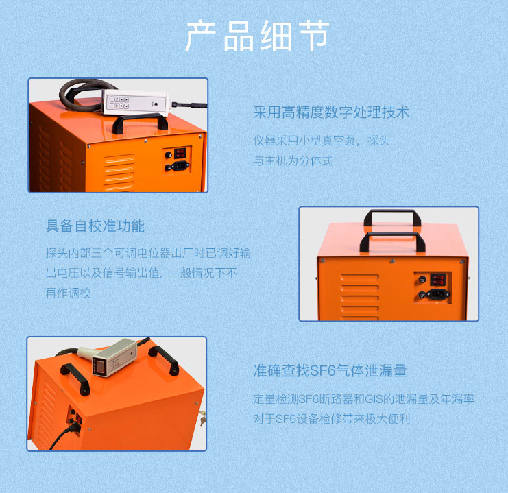 3、專用于于電力、鐵道、電器制造、化工、消防器材以及原子物理科研等部門對(duì)充有六氟化硫設(shè)備、容器進(jìn)行檢漏,可以迅速、準(zhǔn)確地定性和定量檢測(cè)。