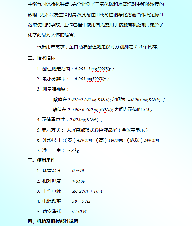 ZSSZ-600 酸值測定儀參數(shù)