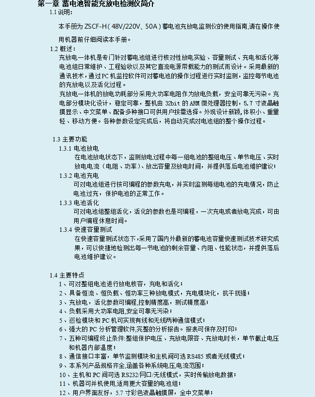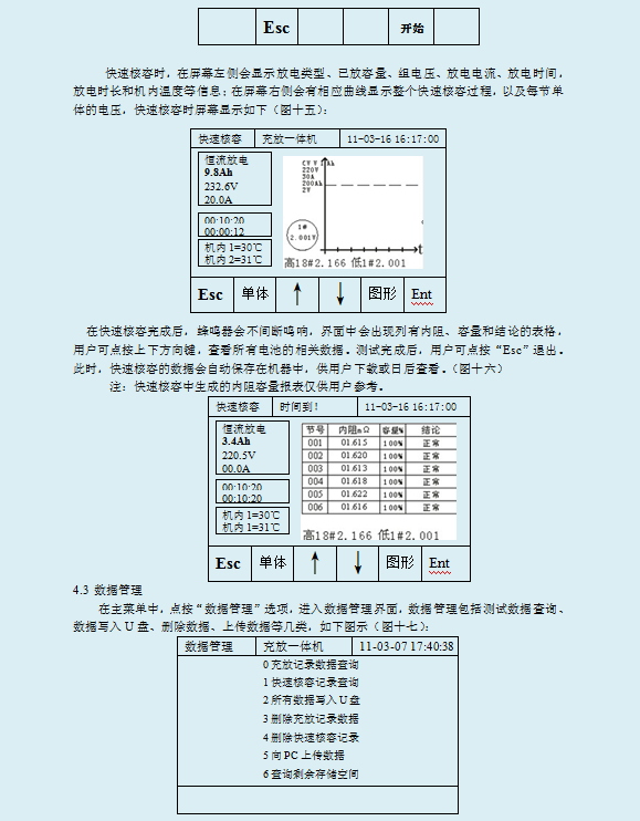 6、具有在線監(jiān)測功能和快速容量分析功能:實時在線監(jiān)測、顯示所有測試數據:電流、電池組電壓、單體電池電壓、放電時間、容量;在核對性放電試驗結束時,能快速分析出各單體的剩余容量。