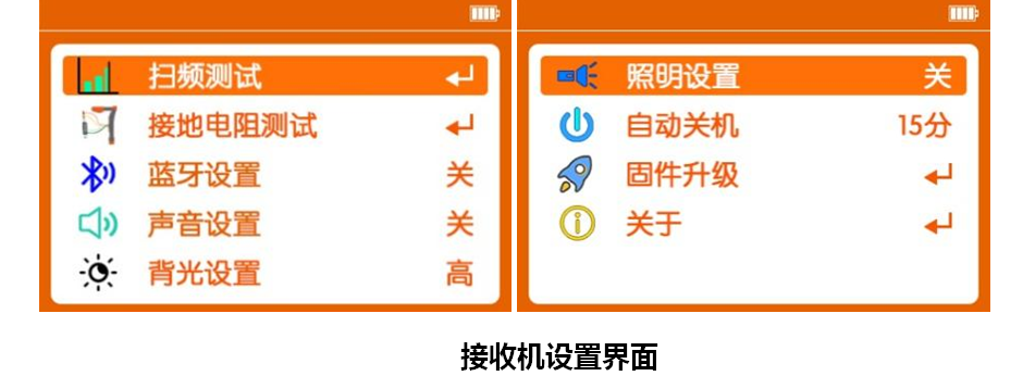 接收機:用于管線路徑探測、電纜識別和接地電阻測試。內(nèi)置多個屏蔽3D天線,可對發(fā)射機產(chǎn)生的640Hz、1280Hz、10kHz等6種不同脈沖編碼電流信號進行有效識別。也可識別50Hz和250Hz工頻信號和中心頻率為33kHz、82kHz的射頻信號。使用3.5寸彩色液晶屏,實時動態(tài)顯示360°全方位管線路徑指示,深度、電流和管線相對位置。