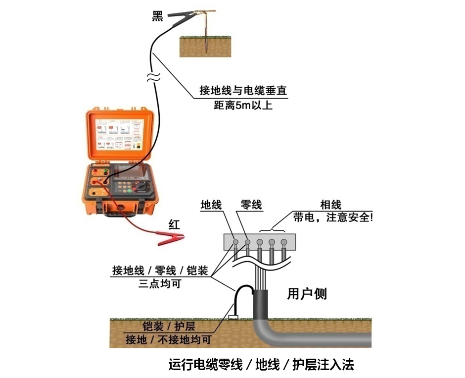 直連法: 一般可以達到線纜長度0~20公里,主要由接地電阻、線纜電阻和線纜埋地深度決定 耦合法:一般可以達到線纜長度0~10公里,主要由接地電阻、線纜電阻和線纜埋地深度決定 感應法:適用于埋地深度小于2m的線纜 |