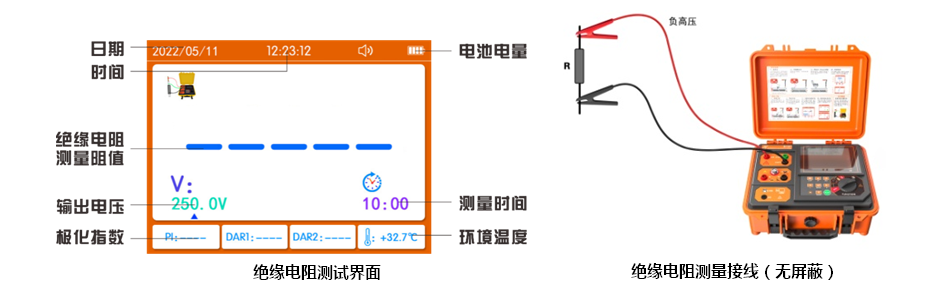 絕緣電阻測試專用于試驗室或現(xiàn)場做絕緣測試。適用于測量各種絕緣材料的電阻值如變壓器、電機、電纜及電器設備等的絕緣電阻。內(nèi)嵌高精度微電流測量系統(tǒng)、數(shù)字升壓系統(tǒng)、自動放電電路等。額定輸出測試電壓范圍100V~2500V,絕緣電阻測量范圍0.01MΩ~2.50TΩ。功能由信號發(fā)射機和連接測試線來配合實現(xiàn)。