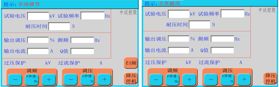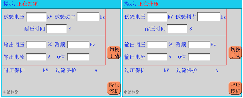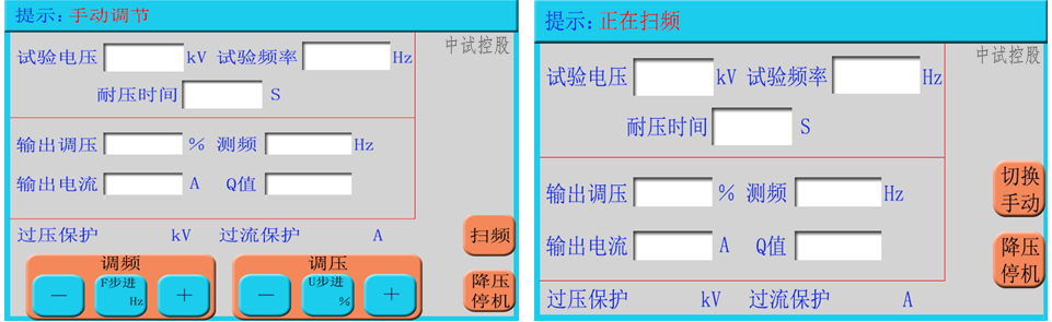 5·裝置自動掃頻時頻率起點可以在規(guī)定范圍內(nèi)任意設(shè)定,同時液晶大屏幕顯示測頻和試驗頻率一致,方便使用者直觀了解是否找到諧振點;