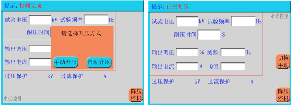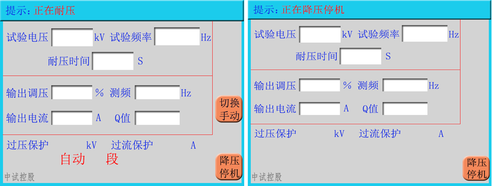 12·耐壓時自動跟蹤電壓,電壓正常波動時自動調(diào)整電壓到目標電壓,異常波動時提示用戶電壓異常波動,由用戶根據(jù)試驗情況進行操作;
