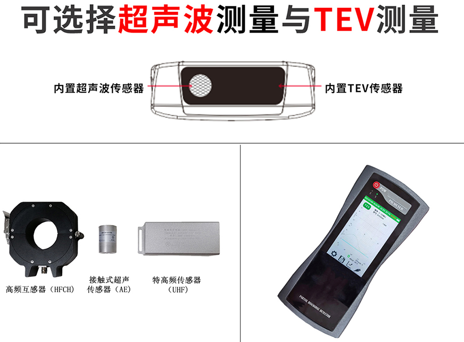 檢測主機(jī):內(nèi)置二合一傳感器(超聲波 +TEV地電波傳感器) |