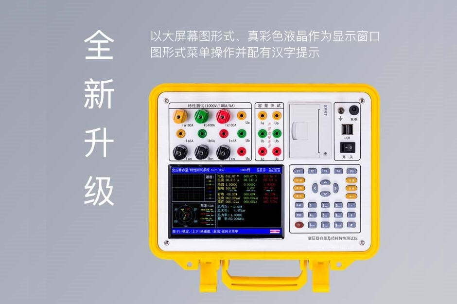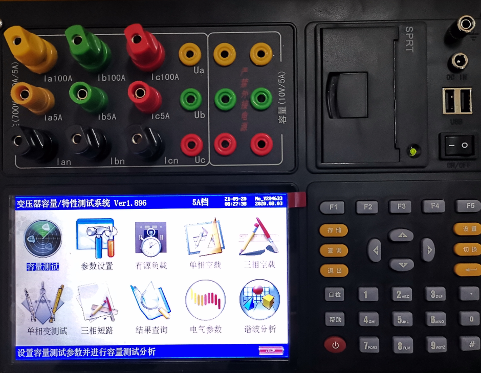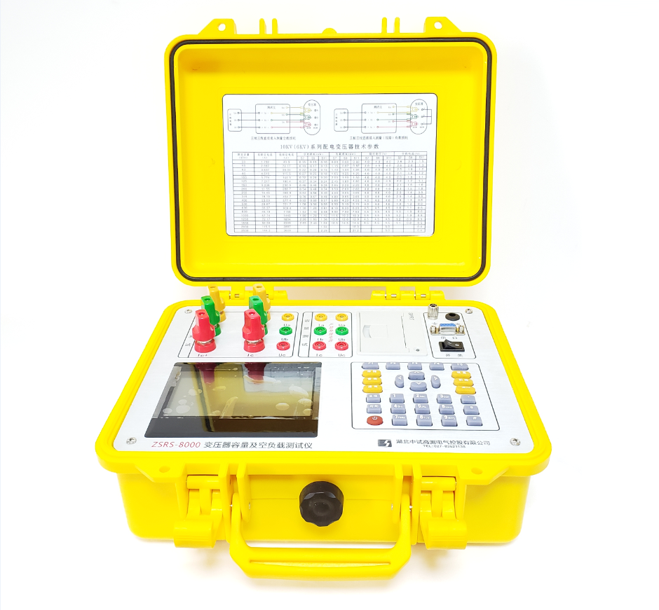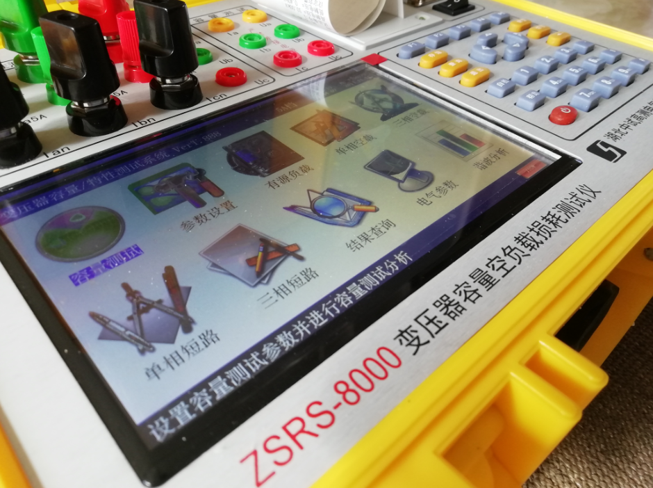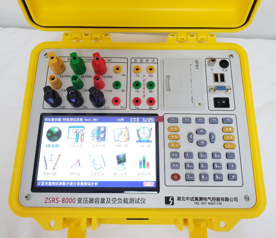 4·ZSRS-8000變壓器容量空負載損耗測試儀具有體積小、重量輕、測量準確度高、穩(wěn)定性好、操作簡便易學等優(yōu)點,完全可取代以往利用多表法測量變壓器損耗和容量的方法,接線簡單,測試、記錄方便,大大提高了工作效率。它以大屏幕彩色液晶作為顯示窗口,菜單操作并配有漢字提示,集多參量于一屏的顯示界面,人機對話界面友好,使用簡便、快捷,是電力用戶的首選。