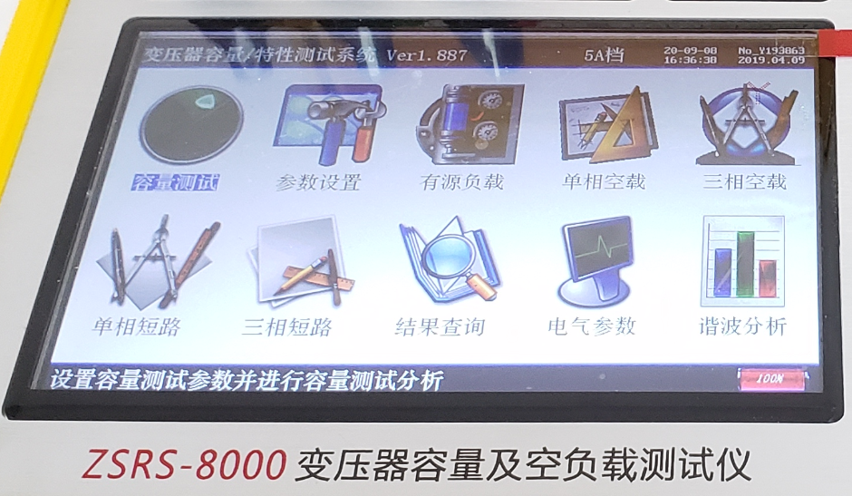 ZSRS-8000變壓器容量空負載損耗測試儀的容量判斷遵循國標1094標準,準確度(電壓/電流:±0.1 、 電壓/電流:±0.2 、 電壓/電流:± 0.5)選型時注明精度。