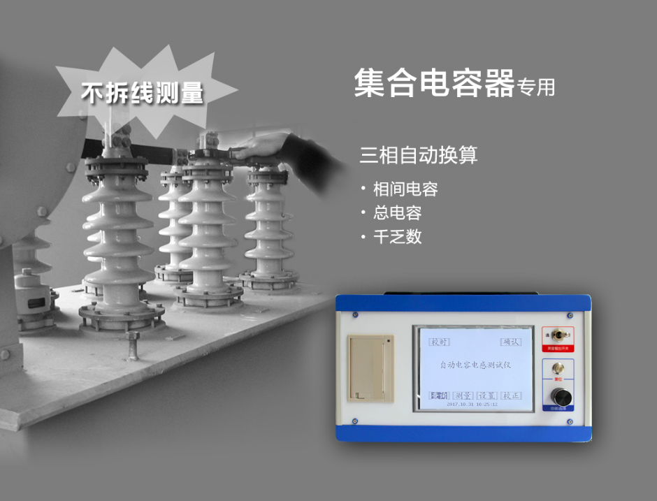 2、電能質(zhì)量問(wèn)題主要由終端負(fù)荷側(cè)引起。其中沖擊性無(wú)功負(fù)載會(huì)使電網(wǎng)電壓產(chǎn)生劇烈波動(dòng),降低供電質(zhì)量,造成電網(wǎng)低功率因數(shù)運(yùn)行等后果。隨著電力電子技術(shù)的發(fā)展,它既給現(xiàn)代工業(yè)帶來(lái)節(jié)能和能量變換積極的一面,同時(shí)電力電子裝置在各行各業(yè)的廣泛應(yīng)用又對(duì)電能質(zhì)量帶來(lái)了新的更加嚴(yán)重的損害,已成為電網(wǎng)的主要諧波污染源。電力部門(mén)對(duì)電能質(zhì)量問(wèn)題越來(lái)越重視,無(wú)功補(bǔ)償成套裝置已大量投入配電網(wǎng)運(yùn)行。這其中,電力電容器是電力系統(tǒng)穩(wěn)定運(yùn)行的重要設(shè)備,無(wú)功補(bǔ)償裝置應(yīng)滿足自動(dòng)跟蹤、實(shí)時(shí)補(bǔ)償?shù)囊?,這就不可避免地要頻繁投、切補(bǔ)償電容器組,這就會(huì)產(chǎn)生過(guò)電流與過(guò)電壓沖擊,長(zhǎng)期運(yùn)行后,有可能引起電容器的容量不足甚至損壞,對(duì)電網(wǎng)的穩(wěn)定運(yùn)行造成影響。為了避免這種情況,早期發(fā)現(xiàn)電容器缺陷,保證設(shè)備的可靠運(yùn)行,避免故障擴(kuò)大,就需要定期對(duì)電容器組進(jìn)行檢測(cè)。而在現(xiàn)場(chǎng)電容器都是成組并聯(lián)的,傳統(tǒng)方法是將電容匯流排拆除,然后用傳統(tǒng)的電容表進(jìn)行測(cè)量,要拆線測(cè)量電容量的工作量很大,而且經(jīng)常拆線會(huì)使得螺絲滑扣或沒(méi)有上緊而留下安全隱患,也容易造成電容的再次損壞。