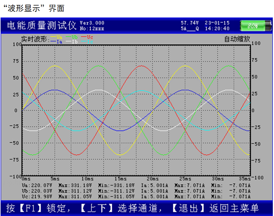 6、可顯示單相電壓、電流波形并可同時(shí)顯示三相電壓、電流波形。