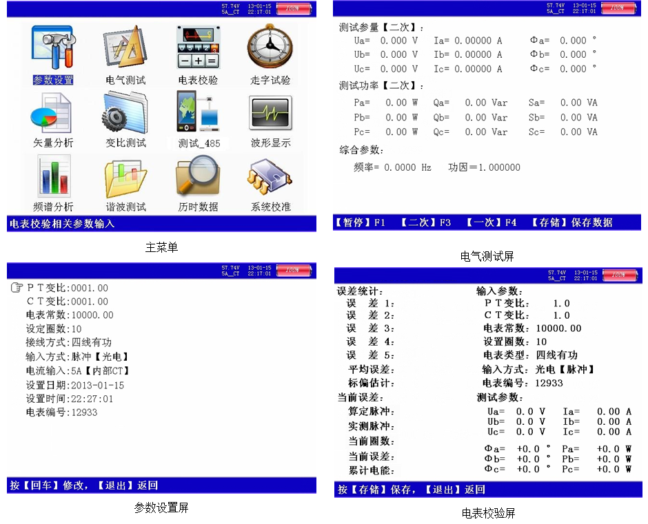 6、可校驗(yàn)電壓表、電流表、功率表、相位表等指示儀表以及三相三線、三相四線、單相的1A、5A的各種有功和無功電能表??赏瑫r(shí)檢測主副表的誤差。