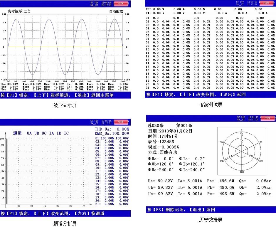5、可測量分析公用電網(wǎng)供到用戶端的交流電能質(zhì)量,其測量分析:頻率偏差、電壓偏差、三相電壓允許不平衡度和電網(wǎng)諧波。