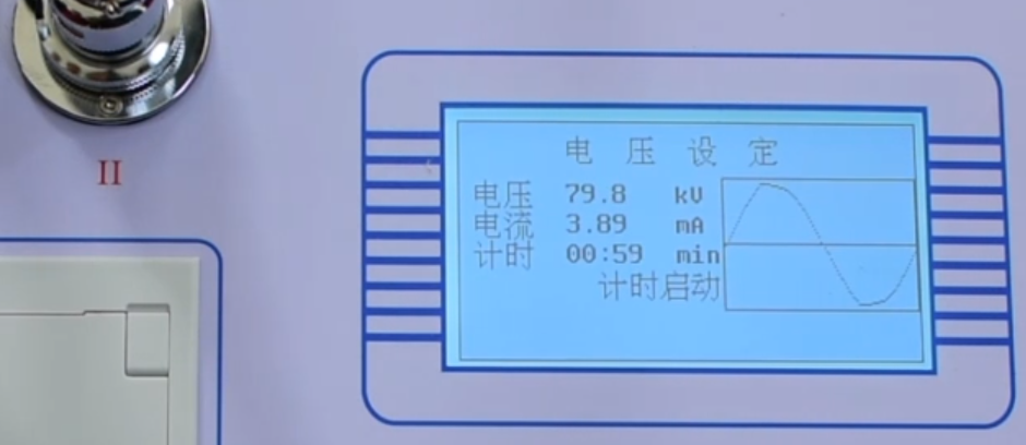 5、試驗過程中,自帶高壓閃爍提醒顯示,時刻提醒操作人員注意安全;