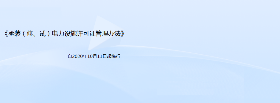 第四十三條 本辦法自2020年10月11日起施行。原國家電力監(jiān)管委員會于2009年12月18日公布的《承裝(修、試)電力設(shè)施許可證管理辦法》(國家電力監(jiān)管委員會令第28號)同時廢止。