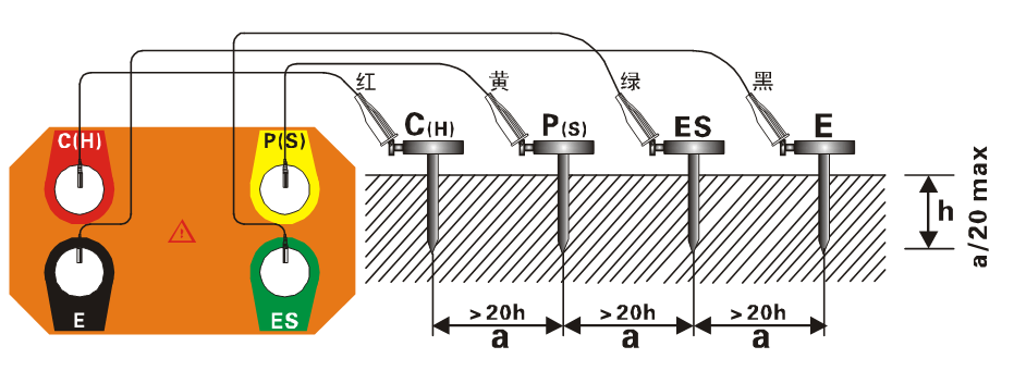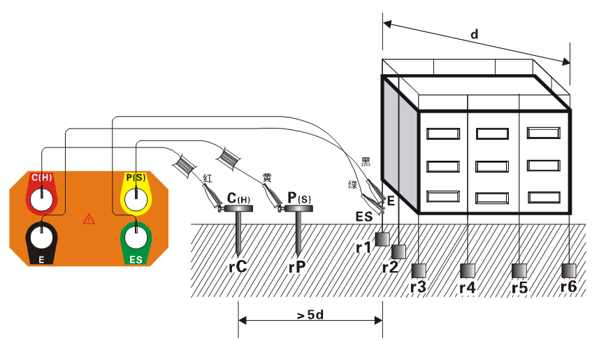 二三四線法測量接地電阻(R):