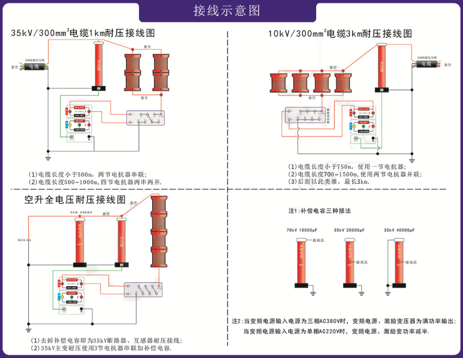 1·執(zhí)行標(biāo)準(zhǔn):DL/T849.6-2004《電力設(shè)備專用測試儀高壓諧振試驗裝置》;