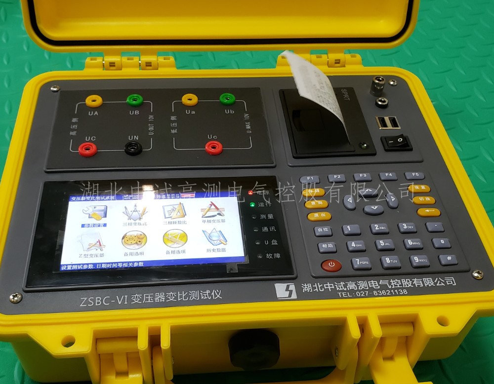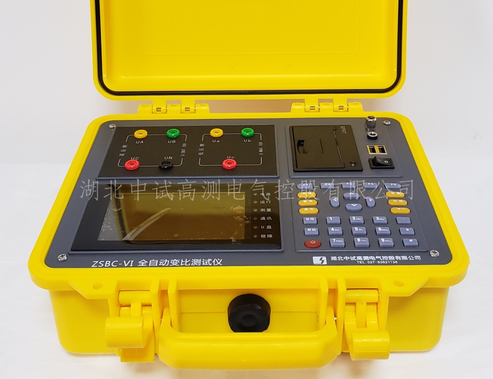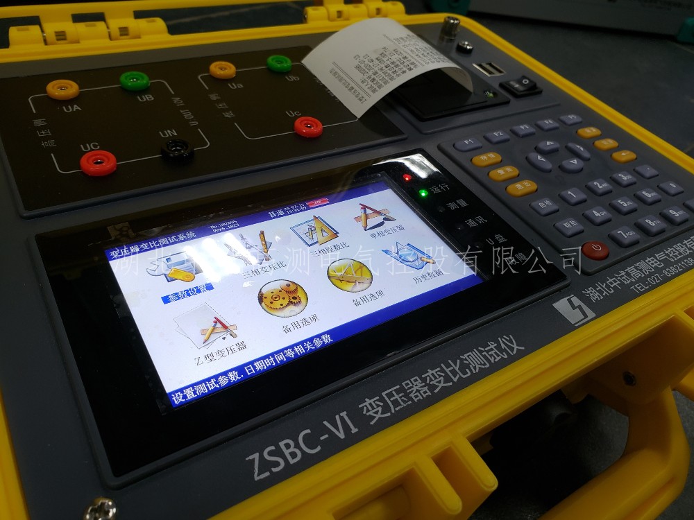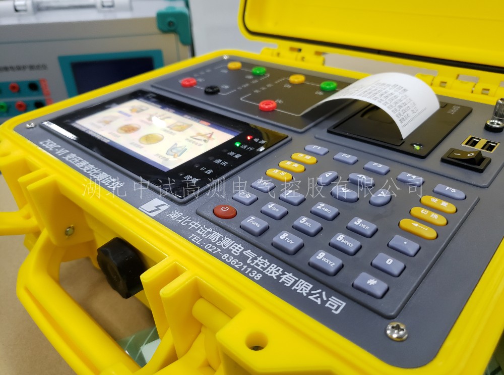 4·ZSBC-VI變壓器變比測試儀采用大屏幕真彩色液晶做為顯示器,全中文圖形化操作界面并配有漢字提示信息、多參量顯示的液晶顯示界面,人機對話界面友好,向量圖顯示及接線判斷為檢查電路的正確性提供了可靠的依據(jù)。全觸摸式導(dǎo)電硅膠鍵盤操作方式,操作手感好,簡便易學(xué)。儀器內(nèi)置大容量掉電不丟失數(shù)據(jù)存儲器,可將現(xiàn)場校驗數(shù)據(jù)保存下來,多可擴展存儲1000組現(xiàn)場校驗結(jié)果,可提供后臺微機管理軟件,將結(jié)果上傳至計算機,實現(xiàn)微機化管理。